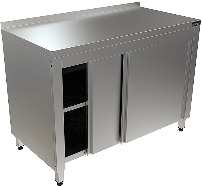 Стол производственный Кобор СТБ-150/70/К используется на предприятиях общественного питания, торговли и пищевых производствах для хранения кухонной утвари и обработки различных ингредиентов перед приготовлением. Материал каркаса - высококачественная нержавеющая сталь (труба 40х40 мм), материал столешницы - высококачественная нержавеющая сталь AISI 430, усиленная листом ЛДСП (толщина 16 мм).