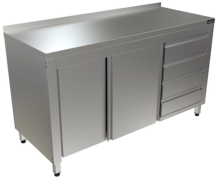 Стол производственный Кобор СТБ/1-120/60/К используется на предприятиях общественного питания, торговли и пищевых производствах для хранения кухонной утвари и обработки различных ингредиентов перед приготовлением. Материал каркаса - высококачественная нержавеющая сталь (труба 40х40 мм), материал столешницы - высококачественная нержавеющая сталь AISI 430, усиленная листом ЛДСП (толщина 16 мм).