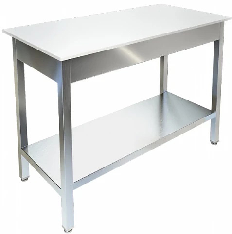 Производственный стол Техно-ТТ СП-423/1700 предназначен для раскатки теста и обработки ингредиентов для приготовления кондитерских и хлебобулочных изделий, а также для расстановки и хранения посуды и кухонного инвентаря на предприятиях общественного питания, торговли и пищевых производствах. Модель оснащена регулируемыми по высоте ножками, что позволяет компенсировать неровности пола. Материал разборного каркаса - труба (40x40 мм) из нержавеющей стали AISI 304, материал сплошной полки - нержавеющая сталь AISI 430, материал столешницы - полипропилен.