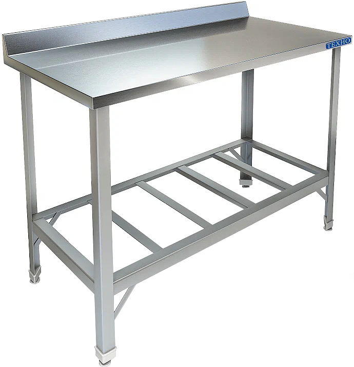 Производственный стол Техно-ТТ СПП-229/708 предназначен для разделки и обработки пищевых продуктов, а также для расстановки и хранения посуды и кухонного инвентаря на предприятиях общественного питания, торговли и пищевых производствах. Модель оснащена обвязкой с 3 сторон и регулируемыми по высоте ножками, что позволяет компенсировать неровности пола. Материал разборного каркаса - труба (40x40 мм) из нержавеющей стали AISI 304, материал столешницы - нержавеющая сталь AISI 304, материал полки-решетки - нержавеющая сталь AISI 430.