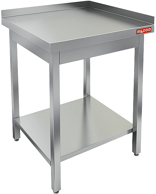 Столешница выполнена из нержавеющей стали толщиной 0,8 мм, усилена листом ДСП, опорные ножки - из трубы 40х40 мм из нержавеющей стали.