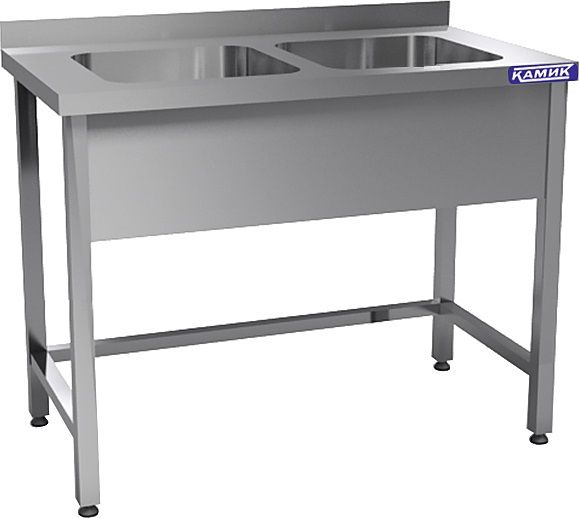 Моечная ванна КАМИК ВМ-2-44146 используется на предприятиях общественного питания и торговли для мойки посуды, овощей и фруктов. Сварной каркас и столешница выполнены из нержавеющей стали AISI 430, цельнотянутая емкость - из нержавеющей стали AISI 304.
