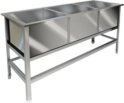 Моечная ванна KAYMAN ВМ-313/700 используется на предприятиях общественного питания и торговли для мойки продуктов питания, посуды и кухонных принадлежностей. Каркас выполнен из нержавеющего уголка AISI 430, емкости - из нержавеющей стали AISI 304 толщиной 0,8 мм.