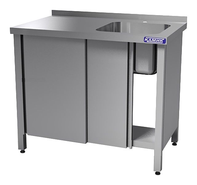 Моечная ванна КАМИК ВМ-1-431271 используется на предприятиях общественного питания и торговли для мойки посуды, овощей и фруктов. Сварной каркас и столешница выполнены из нержавеющей стали AISI 430, цельнотянутая емкость - из нержавеющей стали AISI 304.