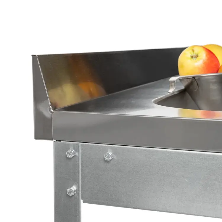 Емкость ванны Кобор ВМЦР/2-210/70/430 Л/Ц/П выполнена из высококачественной пищевой нержавеющей стали, имеет подогнутую кромку для предотвращения травмирования рабочего персонала. Ножки изготовлены в виде уголка 40х40 мм из оцинкованной стали и регулируются по высоте, что помогает избежать наклона рабочей поверхности. Во избежание попадания воды и грязи у ванной имеется борт высотой 70 мм.