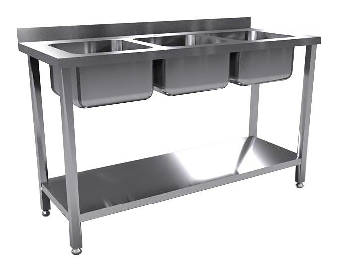 Моечная ванна КАМИК ВМ-3-45217 используется на предприятиях общественного питания и торговли для мойки посуды, овощей и фруктов. Сварной каркас и столешница выполнены из нержавеющей стали AISI 430, цельнотянутая емкость - из нержавеющей стали AISI 304.