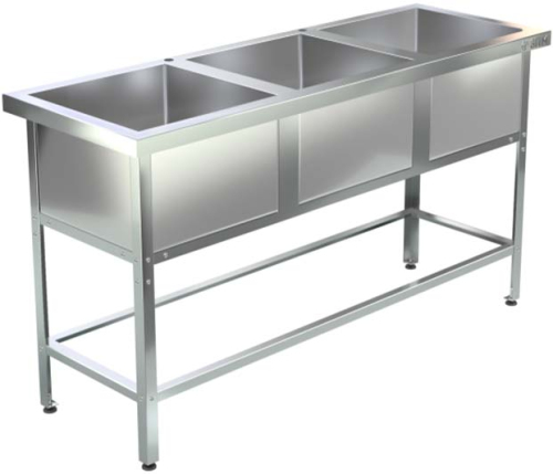 Моечная ванна Assum ВМС-С-3/500 серии Стандарт используется на предприятиях общественного питания и торговли для мойки продуктов, посуды и прочего кухонного инвентаря. Модель оснащена 3 раковинами, отверстиями для смесителя и выпуском. Материал ванны - нержавеющая сталь AISI 430, материал каркаса - оцинкованная сталь (уголок 40х40 мм), материал опор ножек - прочный пластик.