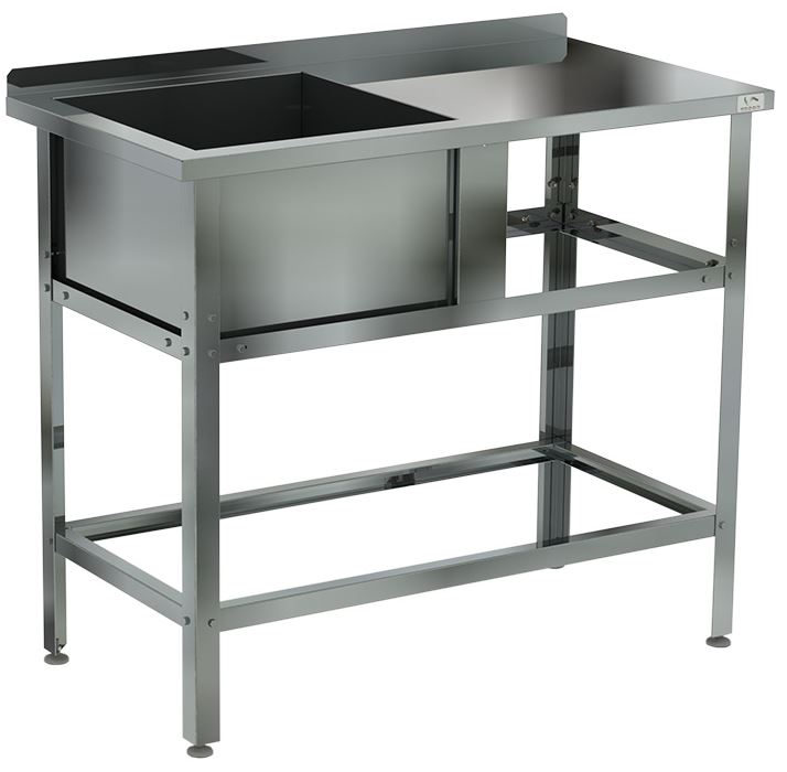 Емкость ванны Кобор ВМСБР/1-134/70/430 Л/П выполнена из высококачественной нержавеющей стали. Технология сварки швов ванны обеспечивает не только герметичность соединения, но и прочность конструкции. Ножки изготовлены в виде уголка 40х40 мм из оцинкованной стали и регулируются по высоте, что помогает избежать наклона рабочей поверхности.