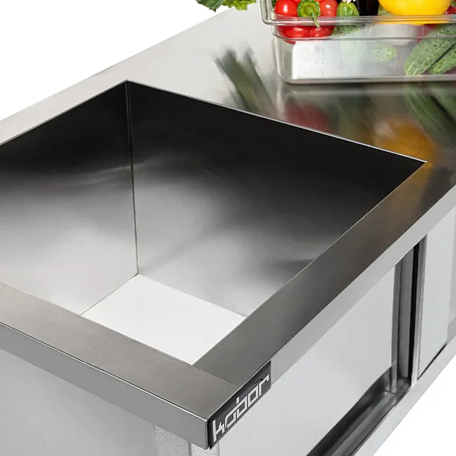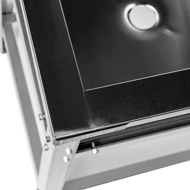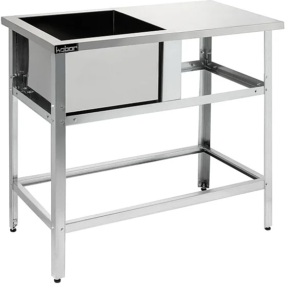 Емкость ванны Кобор ВМСР/1-134/70 выполнена из высококачественной нержавеющей стали. Технология сварки швов ванны обеспечивает не только герметичность соединения, но и прочность конструкции. Ножки изготовлены в виде уголка 40х40 мм из оцинкованной стали и регулируются по высоте, что помогает избежать наклона рабочей поверхности.