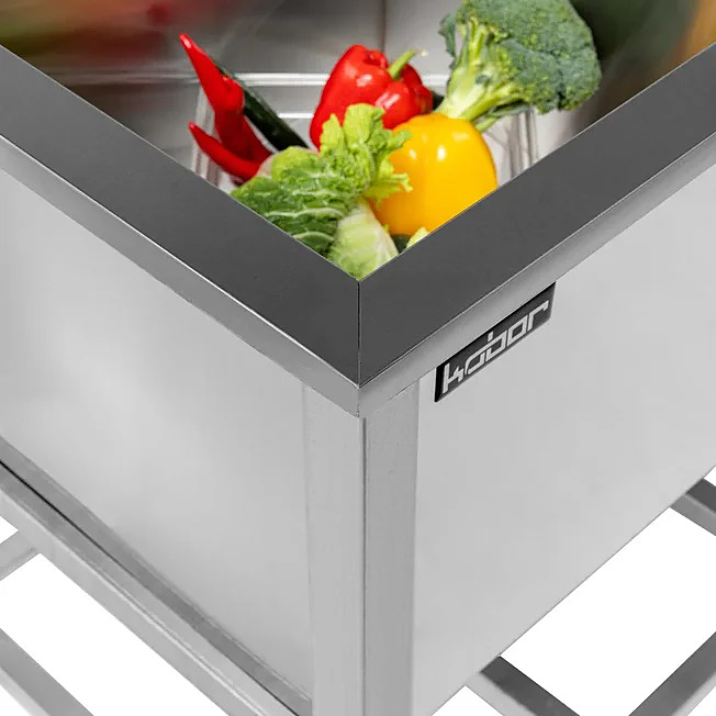 Емкость ванны Кобор ВМСР/1-134/70/430 выполнена из высококачественной нержавеющей стали. Технология сварки швов ванны обеспечивает не только герметичность соединения, но и прочность конструкции. Ножки изготовлены в виде уголка 40х40 мм из оцинкованной стали и регулируются по высоте, что помогает избежать наклона рабочей поверхности.