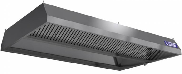 Вытяжной зонт предназначен для очищения воздуха от излишков пара, дыма, жира и продуктов горения на предприятиях общественного питания и торговли. Модель оснащена лабиринтными жироулавливающими фильтрами. Корпус выполнен из нержавеющей стали AISI 430.
