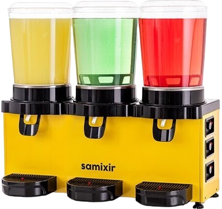 Сокоохладитель Samixir MMM30.AB используется в ресторанах, кафе, барах, супер- и гипер-маркетах, магазинах, на предприятиях уличной торговли и в развлекательных центрах для охлаждения и розлива различных сокосодержащих напитков. Модель оснащена механическим термостатом, антивандальной чашей из поликарбоната.