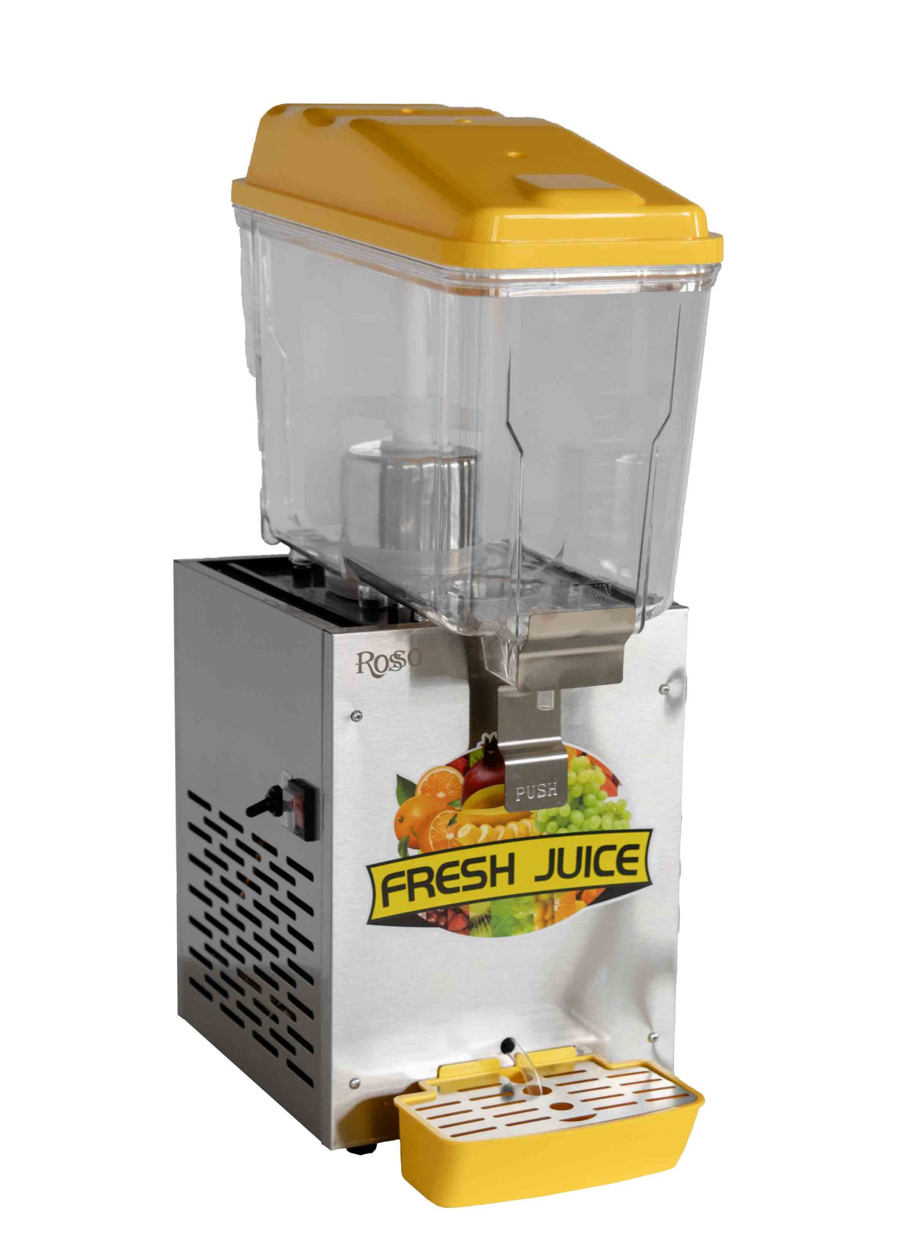 Сокоохладитель Rosso JD-161A используется на предприятиях общественного питания, торговли и пищевых производствах для демонстрации и охлаждения различных сокосодержащих напитков. Сокоохладитель оснащен крышкой и каплесборником. Материал корпуса - нержавеющая сталь, материал резервуара - пластик.
