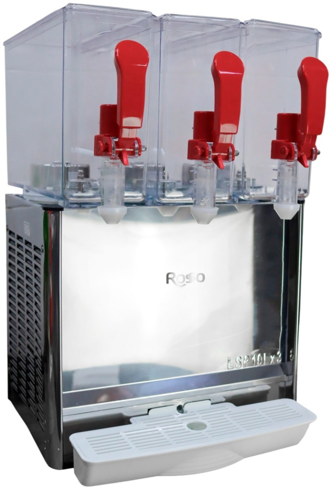 Сокоохладитель Rosso LSP10Lx3 используется на предприятиях общественного питания, торговли и пищевых производствах для демонстрации и охлаждения различных сокосодержащих напитков. Сокоохладитель оснащен каплесборником. Материал корпуса - нержавеющая сталь, материал резервуара - пластик.