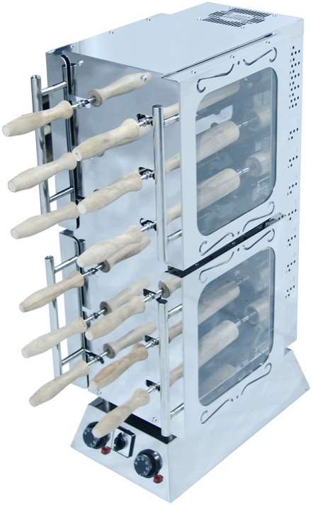Аппарат для трдельников Grill Master Ф6ШМЭ используется на предприятиях общественного питания и торговли, в пекарнях и кондитерских для выпечки венгерских калачей. Модель оснащена 2 камерами с раздельным включением, дверями со стеклянными окошками и раздельным приводом каждого вала с защитой от перегрузки. Корпус выполнен из высококачественной нержавеющей стали, валы для выпечки - из бука.