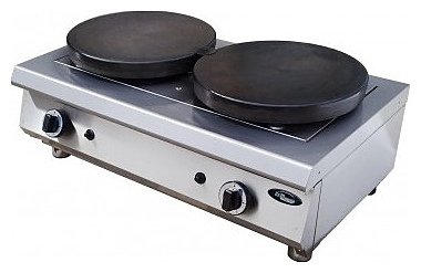 Газовая блинница Grill Master Ф2БкрГ предназначена для выпикания блинов в бистро, кафе и заведениях фаст-фуда. Оборудование оснащено пьезорозжигом и газконтролем. Прибор полностью изготовлен из нержавеющей стали