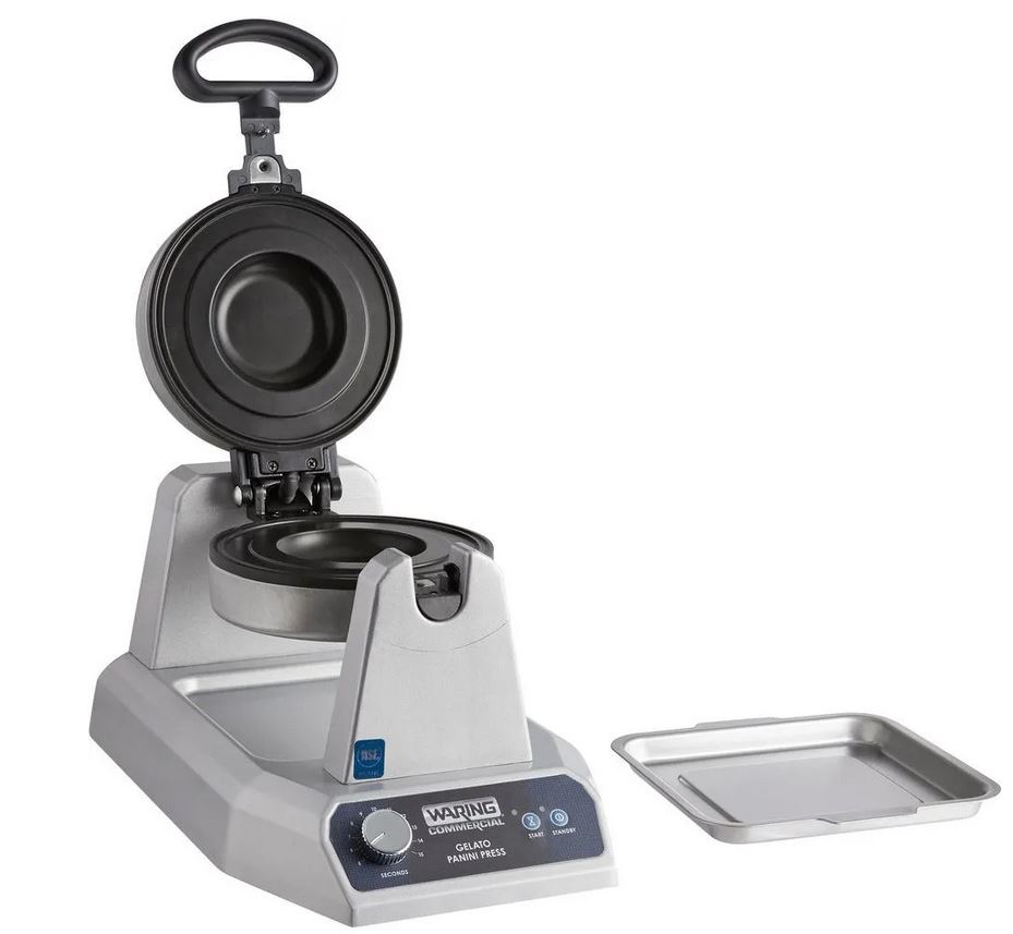 Вафельница Waring WWGP180E Gelato Panini Press предназначается для запечатывания замороженных десертов в булочке на предприятиях общественного питания, торговли и пищевых производствах. Нагревательные элементы вмонтированы в пластины, что гарантирует равномерное распределение нагрева и точный контроль температуры. Рабочие поверхности покрыты тройным антипригарным покрытием.