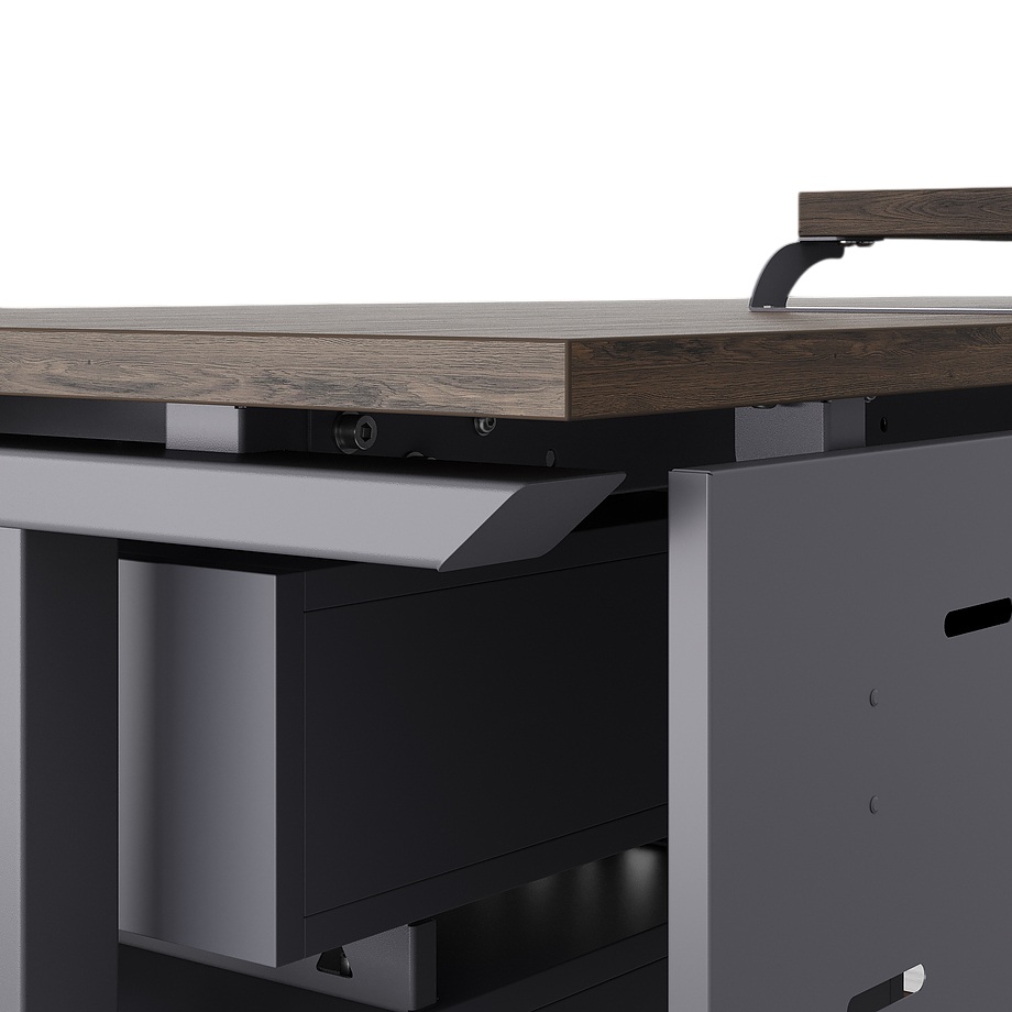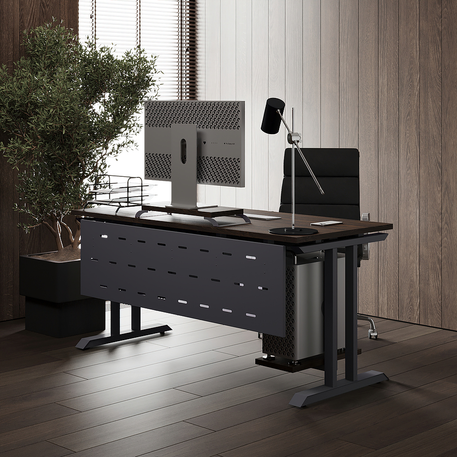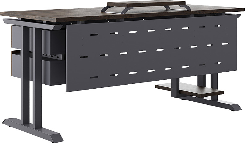 Офисный стол КОБОР T-140/70 graphite/charlston используется в офисных помещениях и кабинетах руководителей. Модель оснащена Т-образными опорами. Материал столешницы - прочный ЛДСП толщиной 25 мм, усиленная снизу металлическим каркасом, материал опор - окрашенный металл.