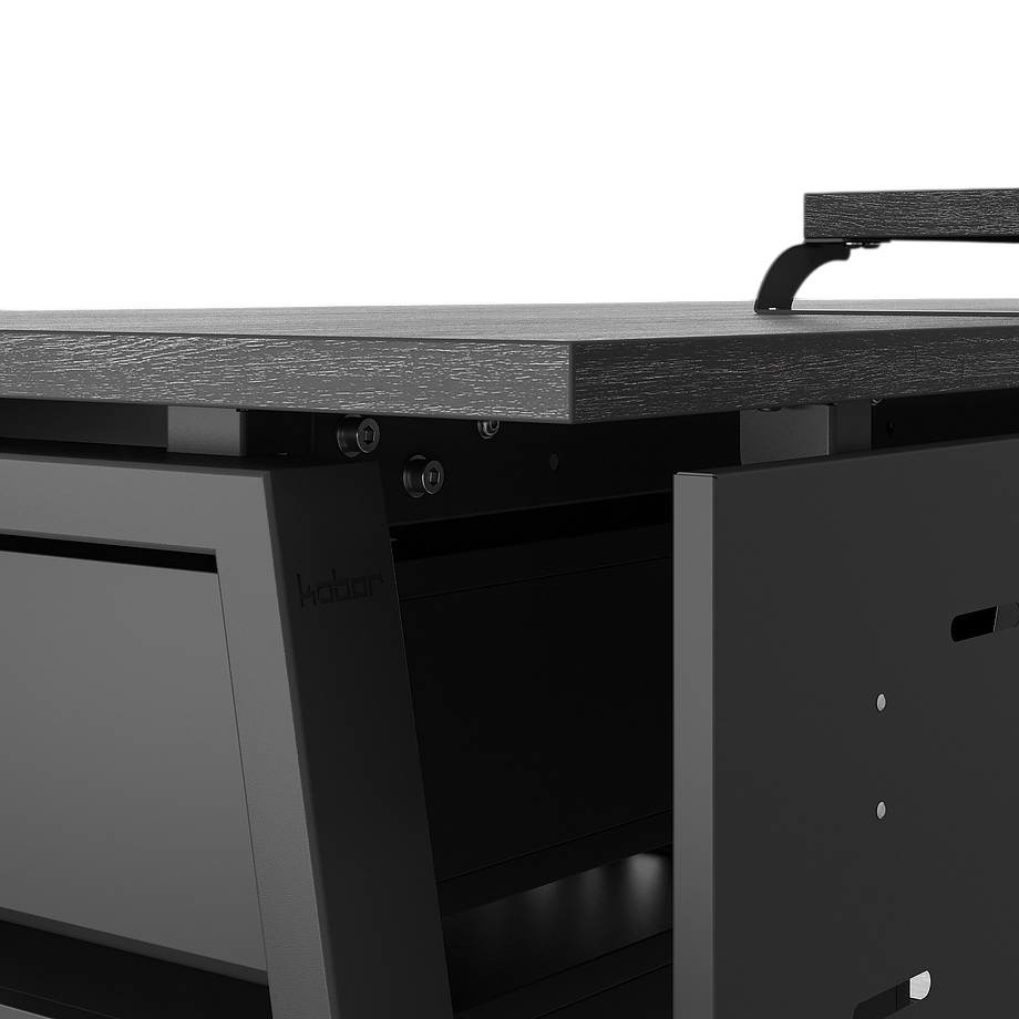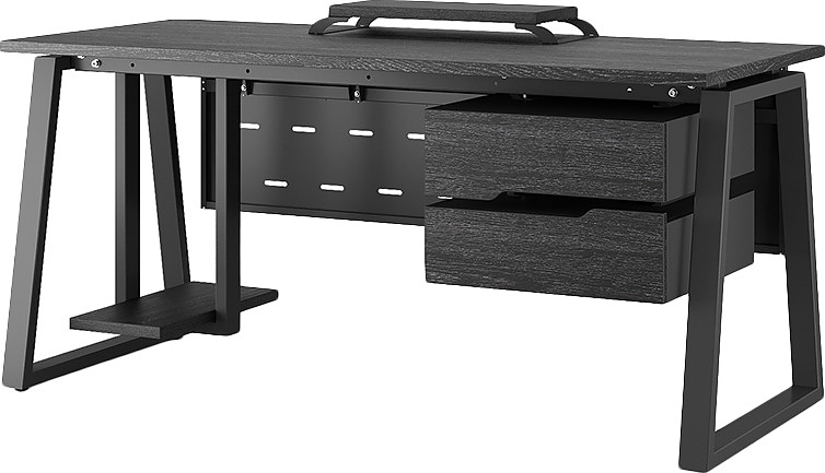 Офисный стол КОБОР TR-120/60 black/wood используется в офисных помещениях и кабинетах руководителей. Модель оснащена трапециообразными опорами. Материал столешницы - прочный ЛДСП толщиной 25 мм, усиленная снизу металлическим каркасом, материал опор - окрашенный металл.