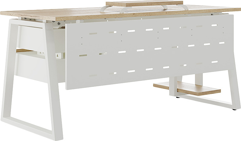 Офисный стол КОБОР TR-120/60 white/natural используется в офисных помещениях и кабинетах руководителей. Модель оснащена трапециообразными опорами. Материал столешницы - прочный ЛДСП толщиной 25 мм, усиленная снизу металлическим каркасом, материал опор - окрашенный металл.