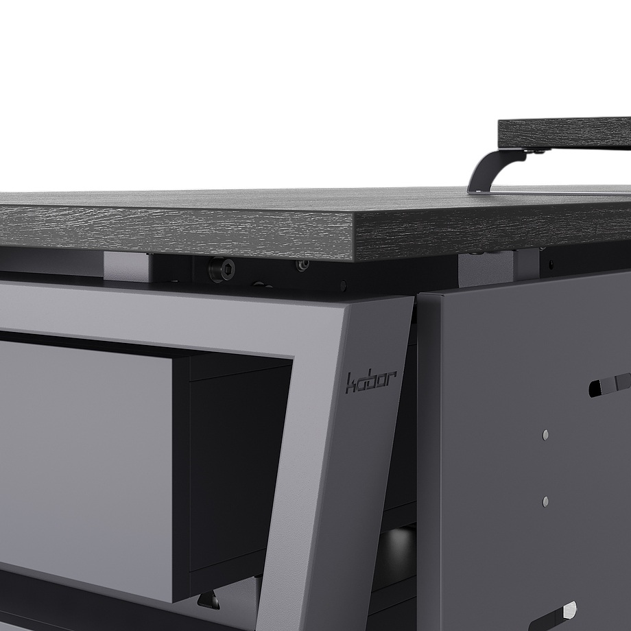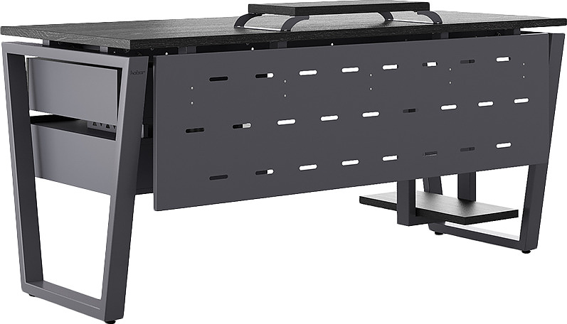 Офисный стол КОБОР OTR-140/70 graphite/wood используется в офисных помещениях и кабинетах руководителей. Модель оснащена опорами в форме обратной трапеции. Материал столешницы - прочный ЛДСП толщиной 25 мм, усиленная снизу металлическим каркасом, материал опор - окрашенный металл.