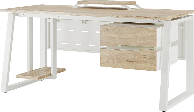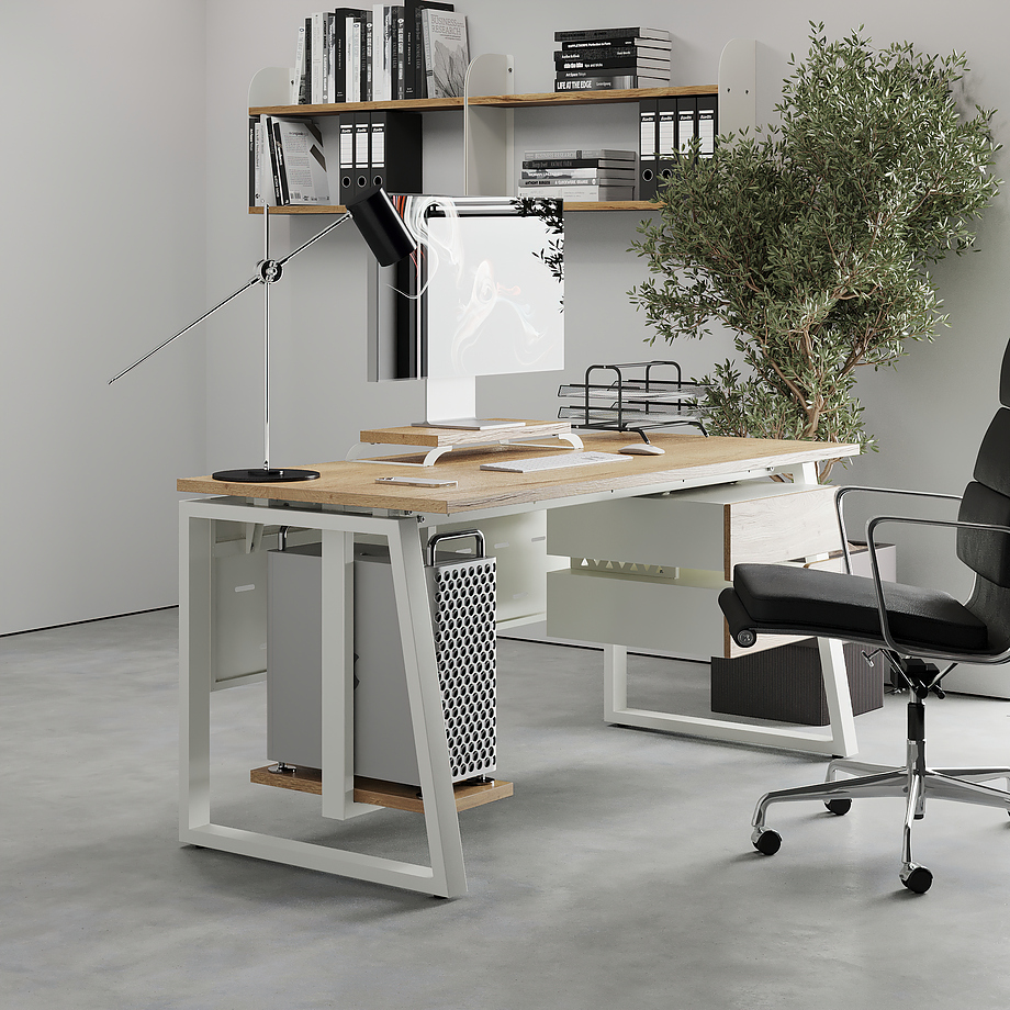 Офисный стол КОБОР TS1-140/70 white/natural используется в офисных помещениях и кабинетах руководителей. Модель оснащена опорами в форме наклонной трапеции. Материал столешницы - прочный ЛДСП толщиной 25 мм, усиленная снизу металлическим каркасом, материал опор - окрашенный металл.