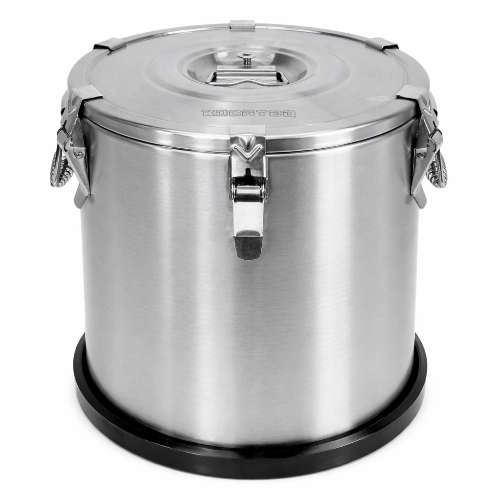 Термоконтейнер Kocateq CN 14 SS используется на предприятиях общественного питания, торговли и пищевых производствах для перемещения жидкостей в подогретом или охлажденном состоянииМодель оснащена крышкой с воздушным клапаном и съемным силиконовым уплотнителем и 4 металличскими защелками, Материал внутреннего объема - высококачественная нержавеющая сталь AISI 304 с инжекцией высокоплотного пенополиуретана, материал внешнего корпуса - высококачественная нержавеющая сталь AISI 201.