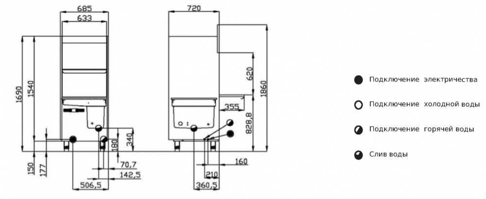 - Цикл мойки: 60 / 120 / 180 / 480 / 180 сек.