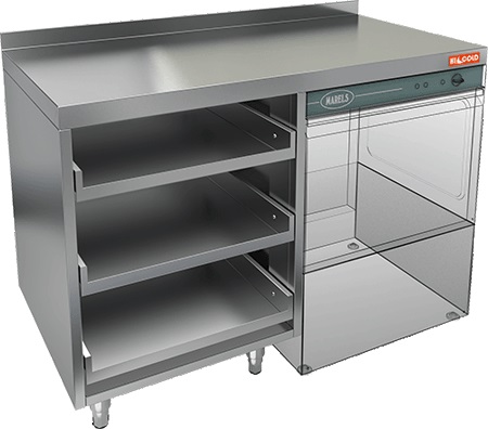 Стол открытый HICOLD НБМКБКП-12/5БП предназначен для комплектации барных стоек, оборудован крылом под посудомоечную машину и тремя полками для корзин с бокалами. Столешница с бортом.