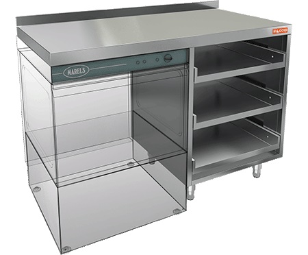 Открытый стол HICOLD НБМКБКП-12/7БЛ используется на предприятиях общественного питания, торговли, в гостиничном бизнесе и других сферах для комплектации барных стоек и размещения посудомоечной машины. Стол оснащен специальным крылом, под которое встраивается посудомоечная машина и 3 полками для корзин с бокалами. Материал корпуса - нержавеющая сталь AISI 430, столешница усилена листом ДСП.