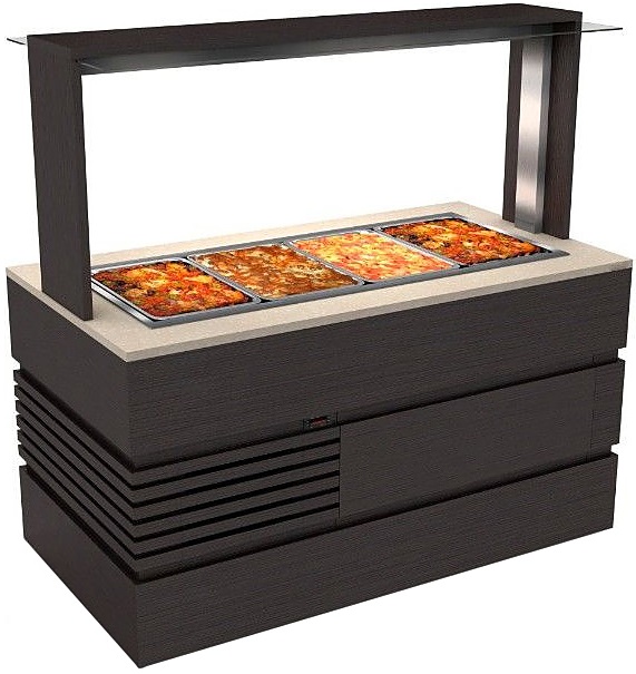 Техно-ТТ БМВ-112/1616 используется на предприятиях общественного питания и торговли для выкладки, хранения и раздачи продуктов. Каркас - оцинкованная сталь, фасад выполнен из шпона и МДФ, столешница изготовлена из искусственного камня. В модели предусмотрена ниша.