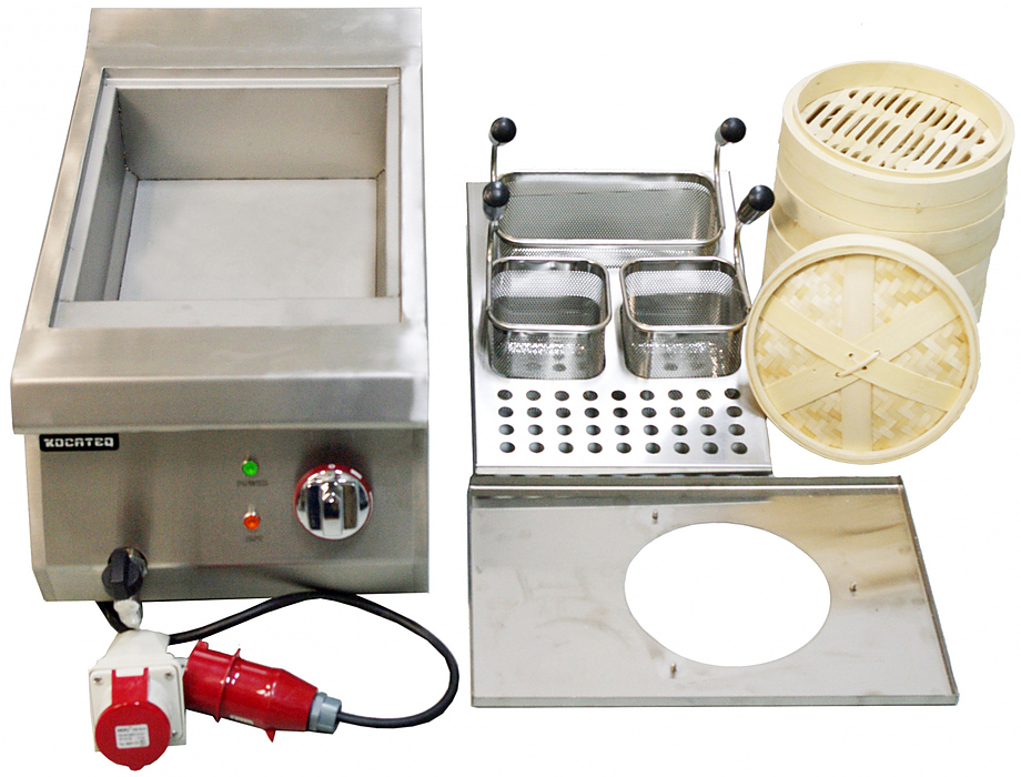 Макароноварка Kocateq 0M0CP1E ES используется на предприятиях общественного питания, торговли и пищевых производствах для приготовления и размораживания кукурузы, фрикаделек, макаронных изделий, пельменей, вареников, овощей, фруктов и других продуктов питания. Материал рабочей поверхностей, внутреннего корпуса и деталей - высококачественная нержавеющая сталь AISI 304 (толщина 1 мм), материал ручек - нержавеющая сталь, материал дна и задней стенки - высококачественная нержавеющая сталь  AISI 201 (толщина 1 мм).