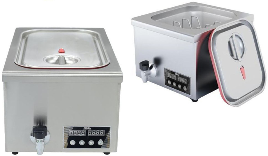 Аппарат Sous Vide LILOMA SOUS-VIDE SV 2/3 предназначен для приготовления широкого спектра блюд на предприятиях общественного питания, торговли и пищевых производствах. Модель оснащена электронным управлением, 2 цифровыми дисплеями, емкостью с крышкой,  регулировкой температуры, таймером, краном и опорами. Материал корпуса - высококачественная нержавеющая сталь SS201.
