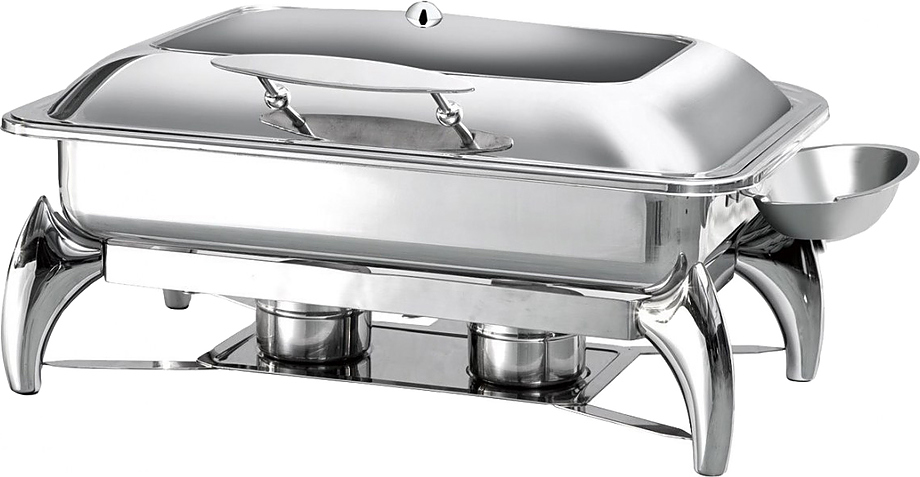 Чафинг-диш EKSI 62593 предназначен для постоянного подогрева первых и вторых блюд и поддержания их оптимальной температуры на предприятиях общественного питания и торговли. Нагрев можно осуществлять с помощью горелок и на индукционной плите. Модель оснащена крышкой со стеклянной вставкой. Корпус выполнен из нержавеющей полированной стали.
