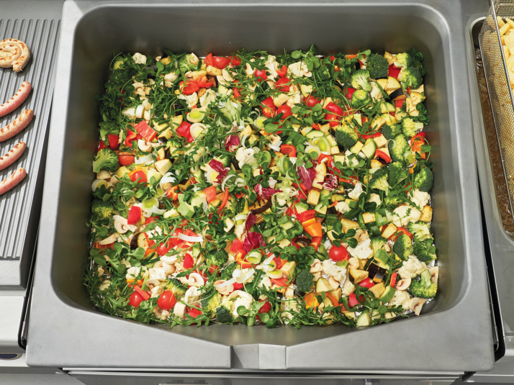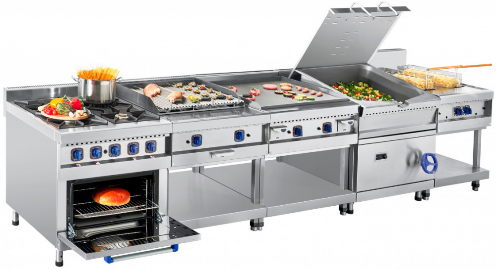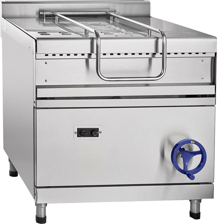 Опрокидывающаяся сковорода Abat ГСК-90-0,27-40 предназначена для приготовления мяса, рыбы, овощей и других продуктов методом жарки, тушения, припускания, пассерования, приготовления на пару и во фритюре на предприятиях общественного питания и торговли. Модель оснащена цельнотянутой сварной чашей, газ-контролем, пьезорозжигом, фиксацией ручки крышки в любом положении и регулируемыми по высоте ножками.
