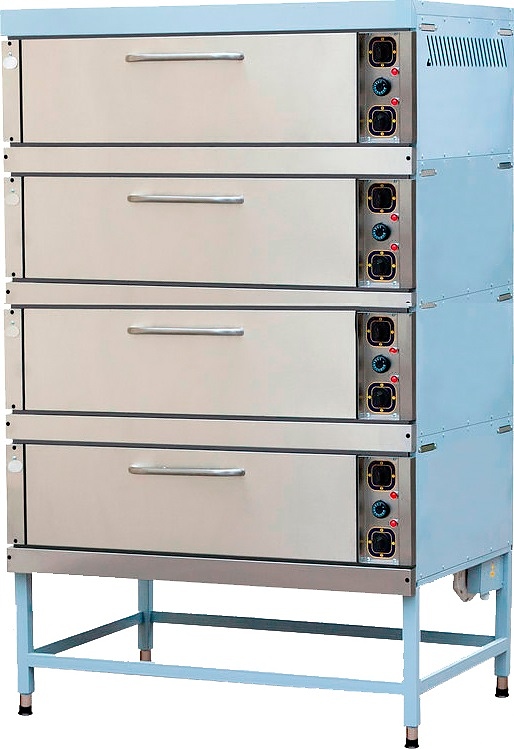 Пекарский шкаф ONEGA ШПЭНМр-4П предназначен для выпечки широкого ассортимента хлебобулочных и кондитерских изделий, а также тепловой обработки различных продуктов на предприятиях пищевой промышленности, общественного питания и торговли. Модель оснащена 4 рабочими камерами с откидными дверьми с горизонтальными рукоятками, подставкой и 4 электромеханическими панелями управления. Корпус выполнен из оцинкованной стали, фронтальная облицовка и двери – из нержавеющей стали AISI 430, противни – из углеродистой стали.