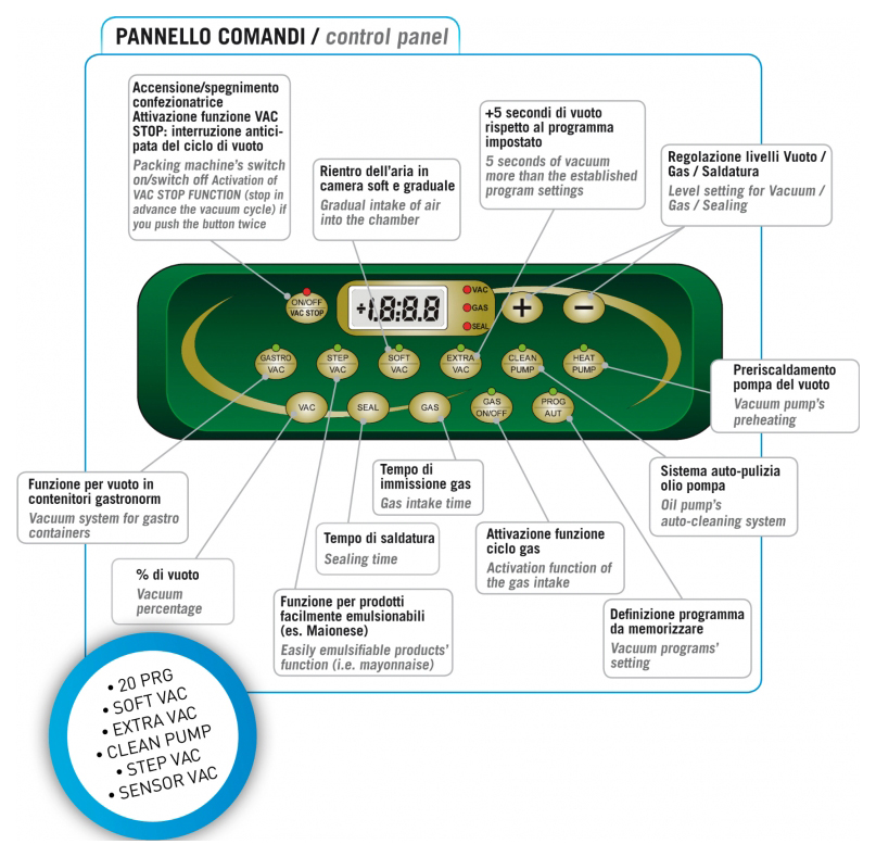 Однокамерный вакуумный упаковщик LAVEZZINI JOLLY LCD используется на предприятиях пищевой промышленности, общественного питания и торговли для упаковки в вакуум продуктов питания, жидкости, готовых блюд и продуктов химической промышленности для увеличения срока хранения. Корпус и камера вакуумирования выполнены из нержавеющей стали.