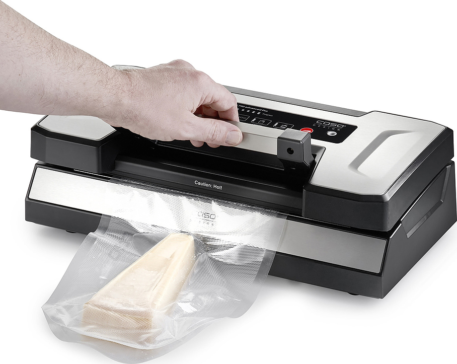 Вакуумный упаковщик CASO VRH 790 advanced используется на предприятиях пищевой промышленности, общественного питания и торговли для герметичной упаковки полуфабрикатов и готовых блюд в пакетах или контейнерах, что способствует продлению их срока хранения. Модель оснащена сенсорным управлением, белым светодиоидным дисплеем, индикацией режимов работы, электронным контроллером температуры сварочного шва, съемным поддоном для сбора влаги и ручкой. Материал корпуса и ручки - высококачественная нержавеющая сталь.