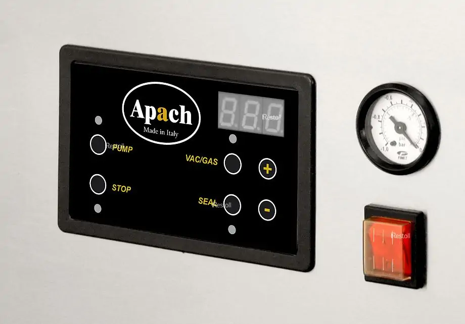 Вакуумный упаковщик Apach AVM420 используется на предприятиях общественного питания и торговли для упаковки различных продуктов в специальных пакетах для увеличения срока их хранения. Модель оснащена модулем газонаполнения, влагозащищенной электронной панелью управления с дисплеем, полностью автоматическим циклом упаковки и бесшовной камерой с закругленными углами, что облегчает процесс чистки. Корпус и камера выполнены из нержавеющей стали.